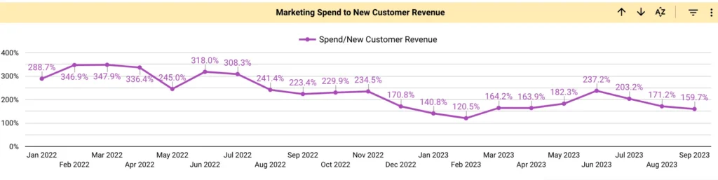 Spends to new user revenue ratio was trending above 310% on average.