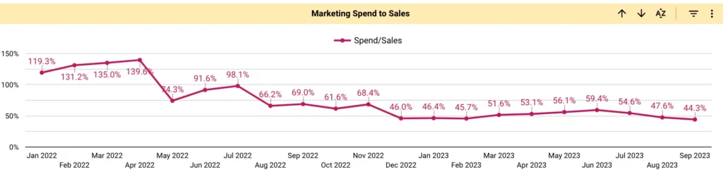 Improvements in advertising efficiency, along with the conversion of customers from one-time purchases to subscriptions, reduced the overall CIR to 44%.