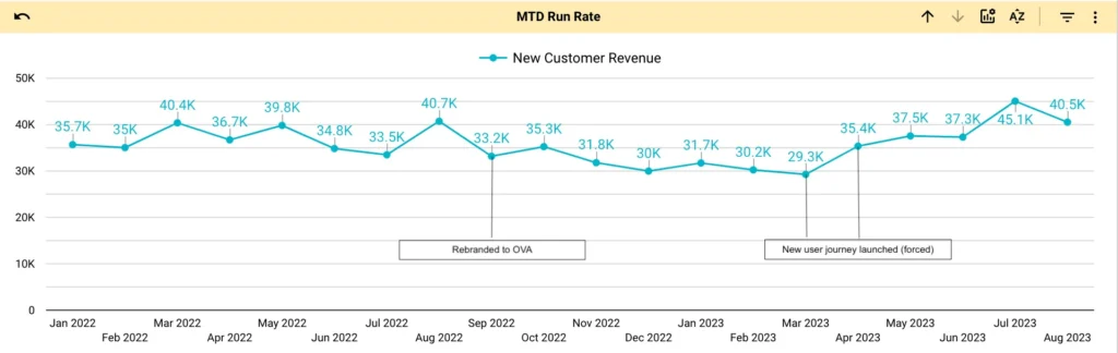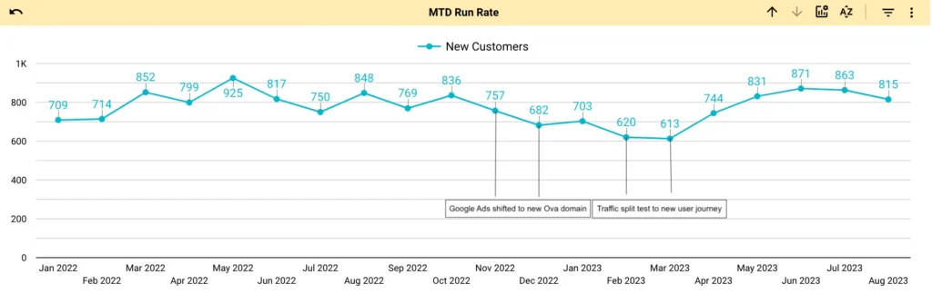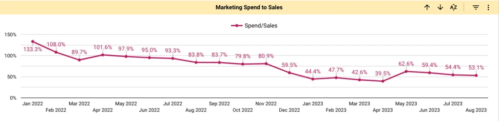 Overall brand revenue grew by +12% over a span of 5 quarters, from Q2-22 to Q2-23, with a 30% reduction in CAC at the brand level.